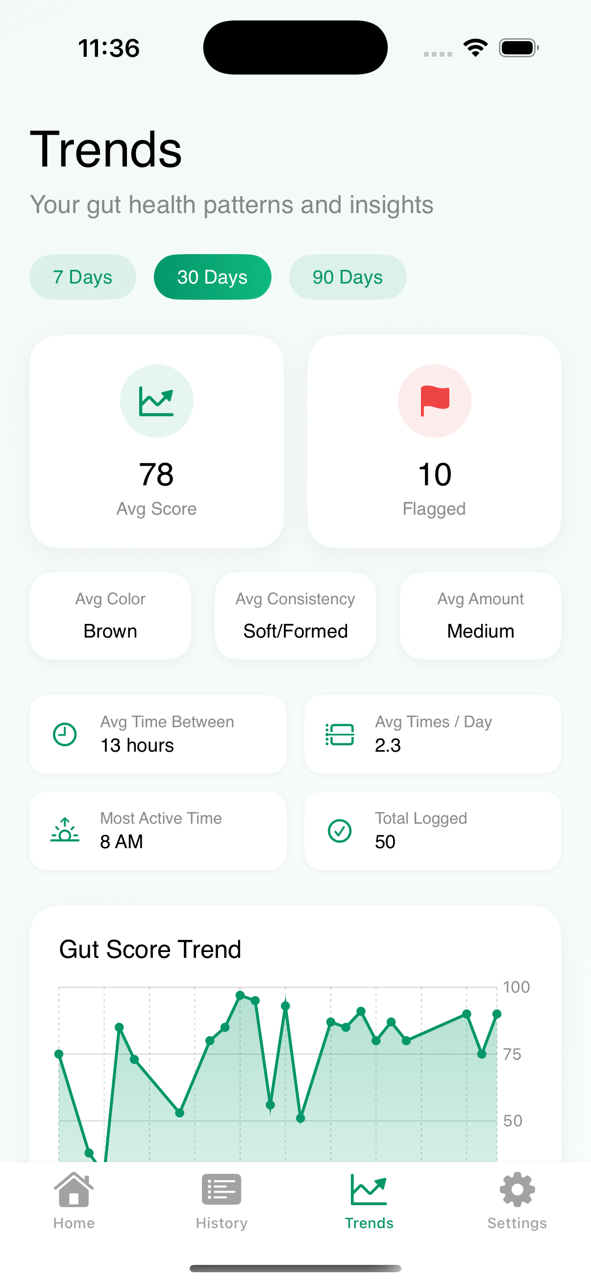 Your daily toolkit for tracking, scoring, and understanding your gut health.